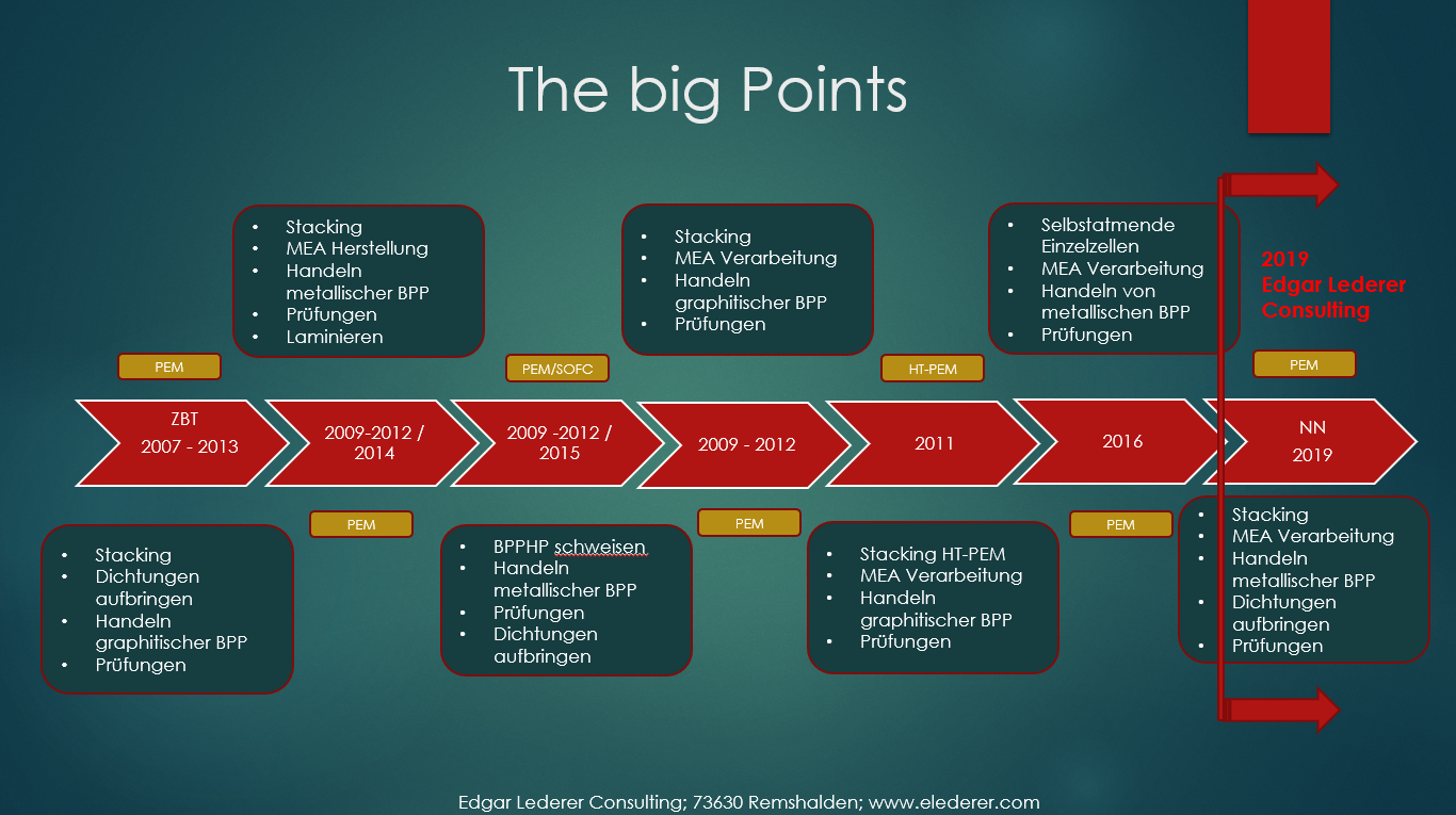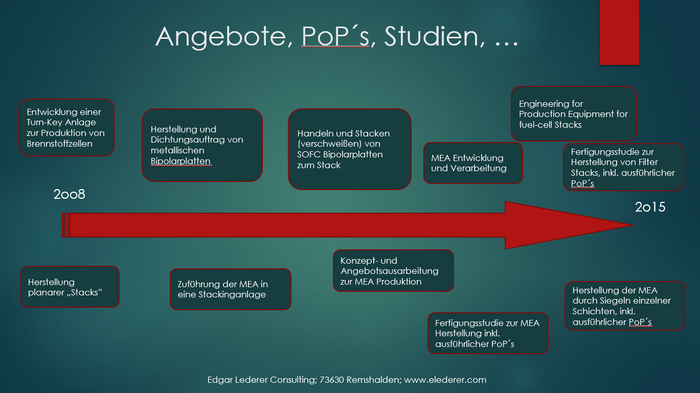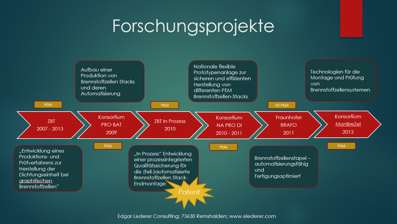 - Festlegung und Auswahl von Produktions-Technologien für Brennstoffzellen von der MEA über die Einzelteile bis zum Stack, für SOFC, PEM oder DMFC